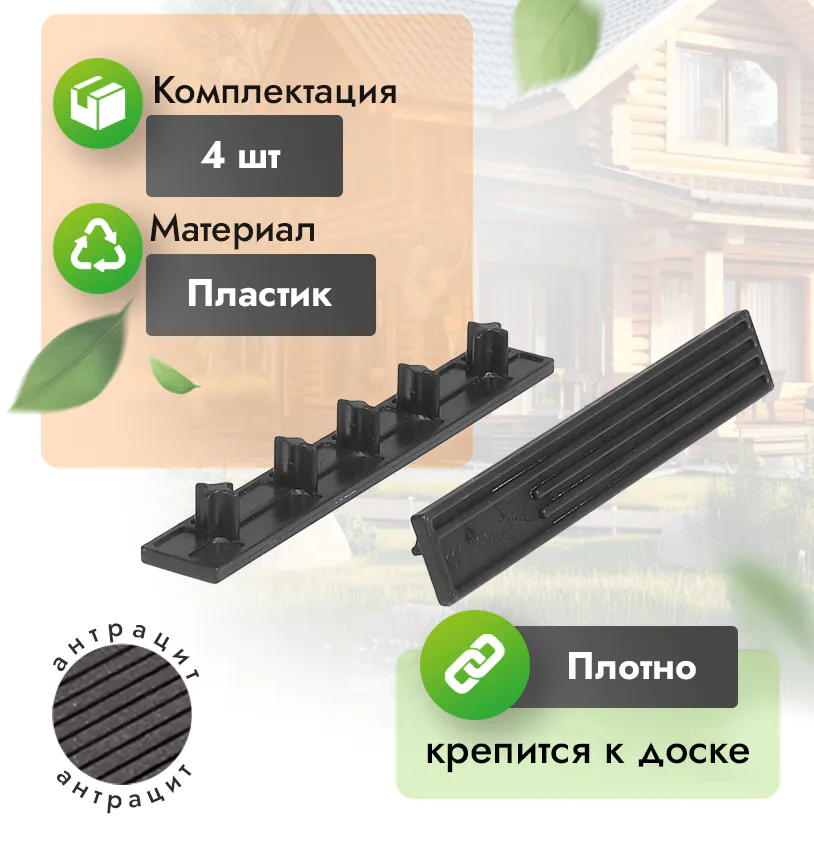 Монтаж уголка из ДПК производится с использованием саморезов, которые крепятся непосредственно к террасной доске или ступени. С помощью этого уголка вы сможете закрыть пространство между стеной и настилом, а также обработать торец террасной доски.